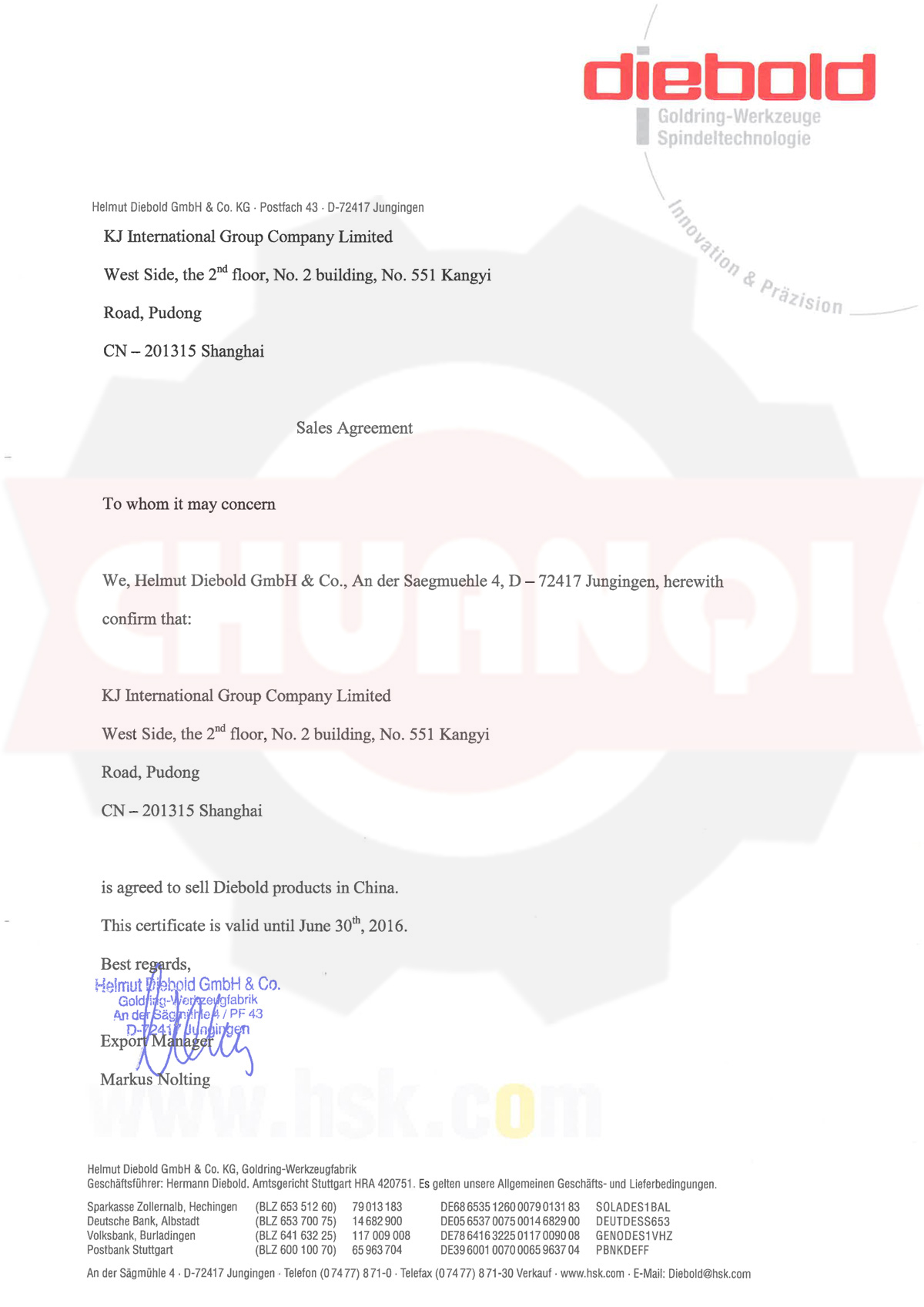 德國Diebold代理證書